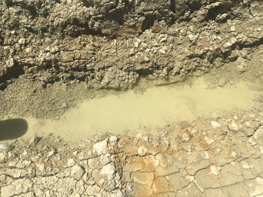 It has been a rainy spring, and we’ve had multiple thunderstorms since my last post. The site is finally mostly dry and there should be a crew coming back out today to continue work. Here is a shot from the upper terrace. You can still see areas of water.